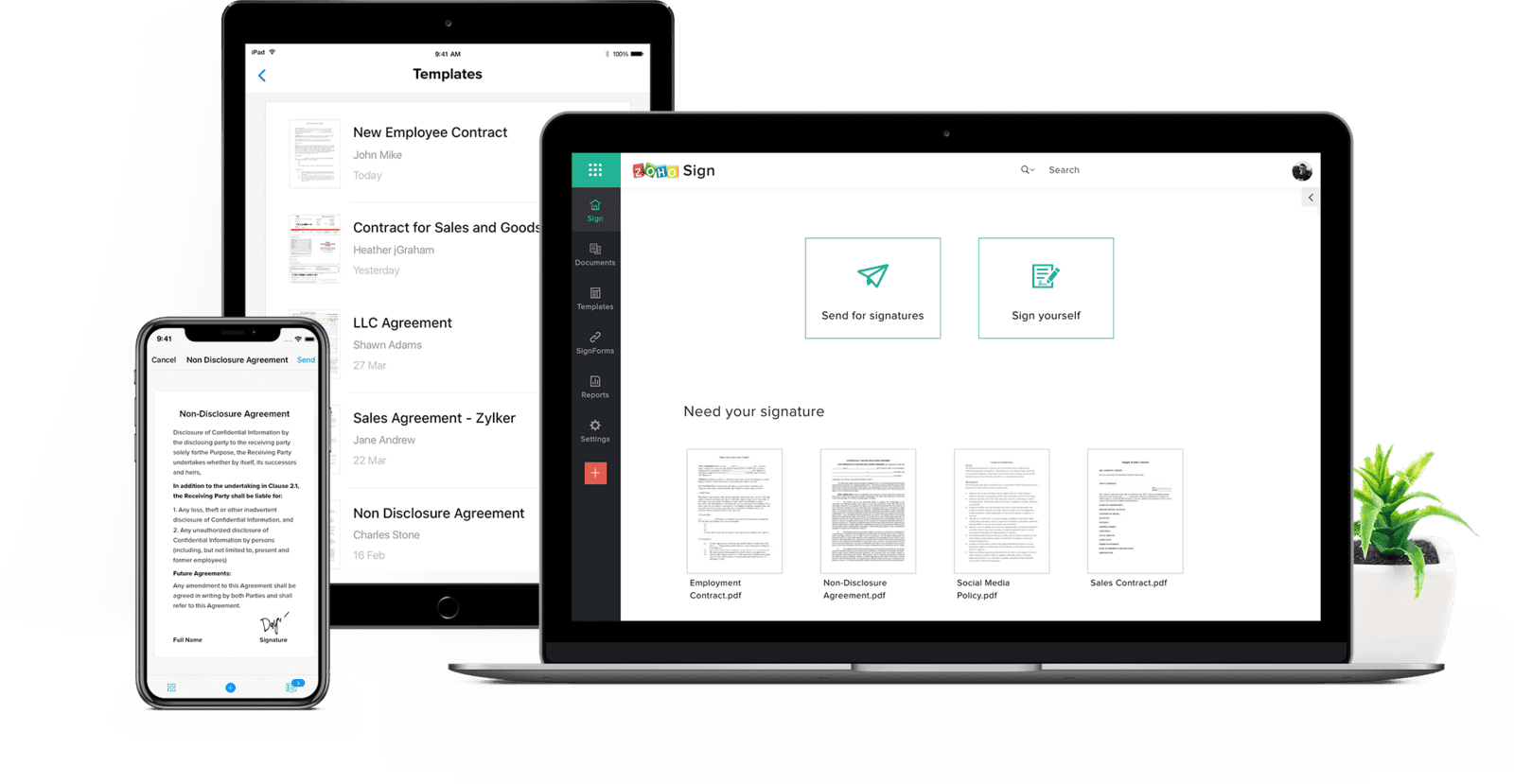 Zoho Sign is a robust digital signature app that provides an intuitive signing experience.Securely sign, send, and manage your documents from anywhere with Zoho Sign.Yes, digitally signed documents are valid for most business documents worldwide and Zoho Signuses Public Key Infrastructure (PKI) technology to provide the highest levels of security for digitally signing and verifying documents.